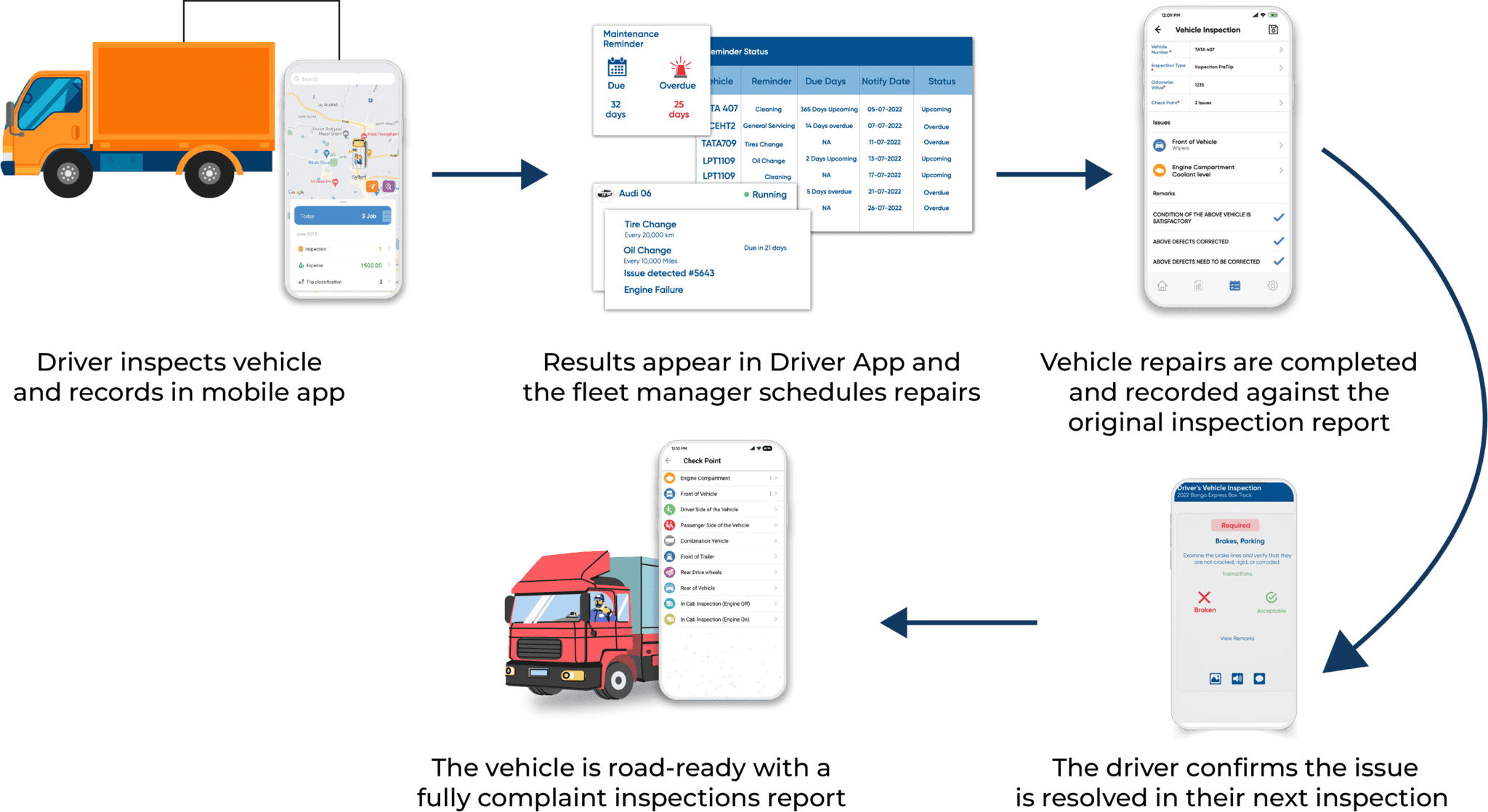 Alerts on the Issues from failed inspection items, ensuring immediate attention to vehicles that need maintenance